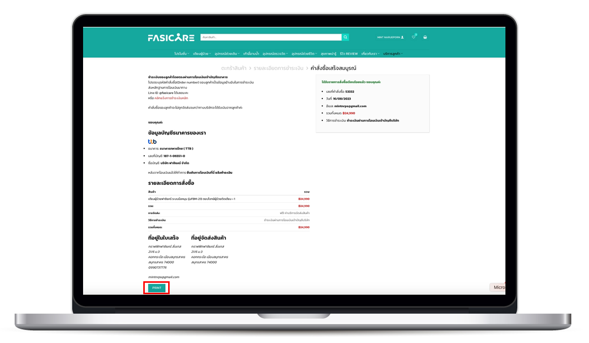 *ขั้นตอนนี้สำหรับลูกค้าที่ต้องการพิมพ์ใบสั่งซื้อสินค้า*